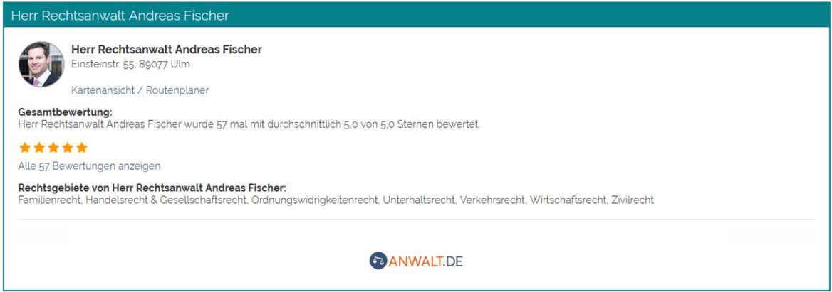 | 2015 | Abschluss theoretischer Teil Fachanwalt Familienrecht |